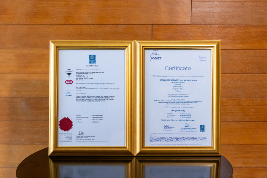 SHAH ALAM, 05 December 2025 – Carlsberg Brewery Malaysia Berhad (“Carlsberg Malaysia”) today shared that it has been awarded the ISO 37001:2025 Anti-Bribery Management System (ABMS) certification, marking a significant milestone in its commitment to strong governance and ethical business practices.