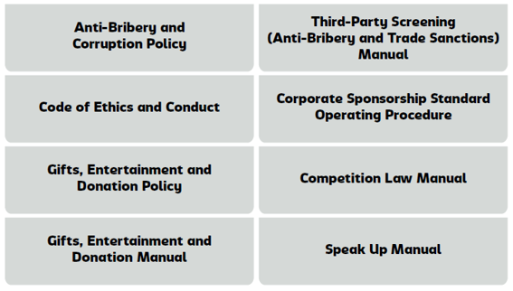 We based our approach to anti-bribery, corruption and competition on the following frameworks, policies, guidelines and procedures: