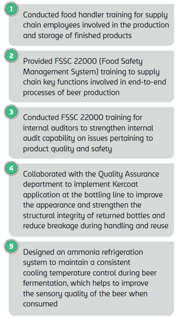 During the year, actions were taken across production and supply chain operations to strengthen product quality and safety controls